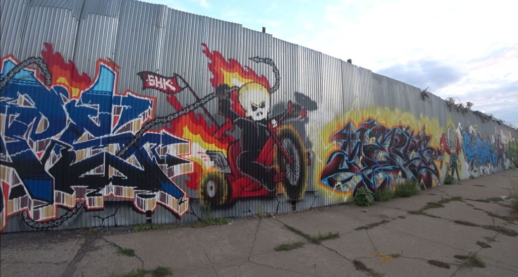 Our walking trip today in New York City is to East Williamsburg in Brooklyn to look at some unique graffiti. I timed this for the sunset setting over the NYC skyline as I crossed the Grand Ave bridge
